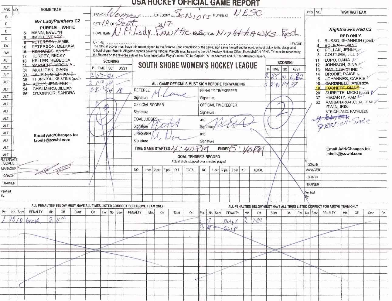 Game 2017001 Sep 10, 2017 NESC 6 |